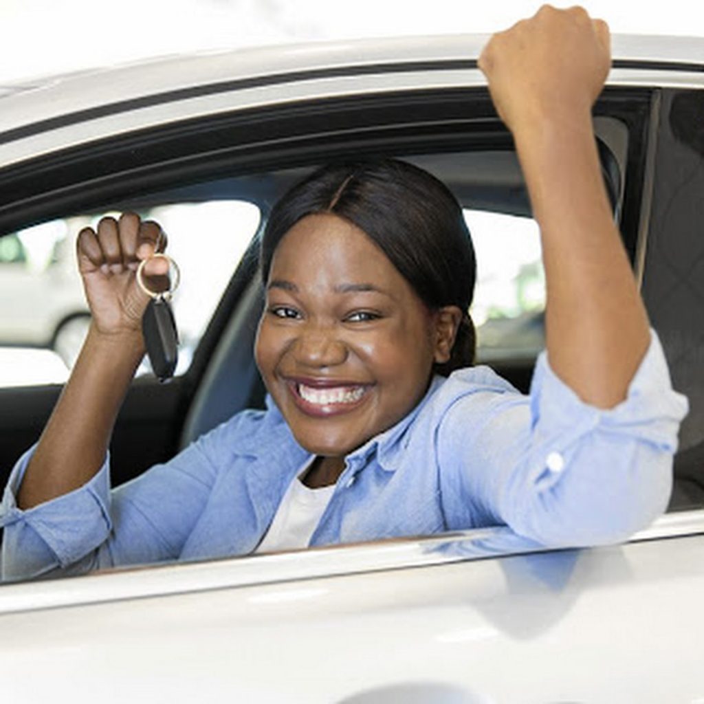 cheerful young african woman showing her new car key at dealership PIC: 123RF